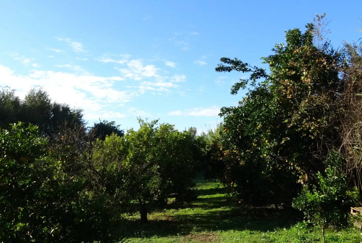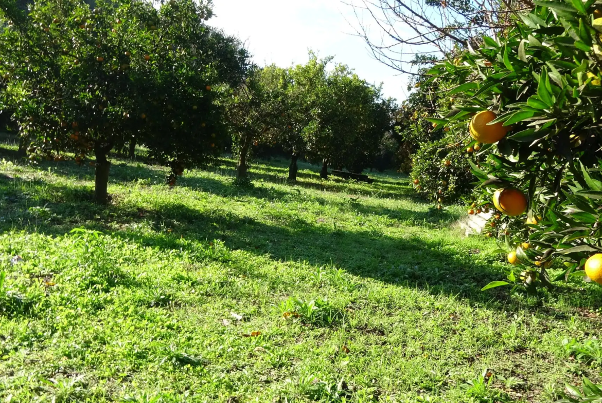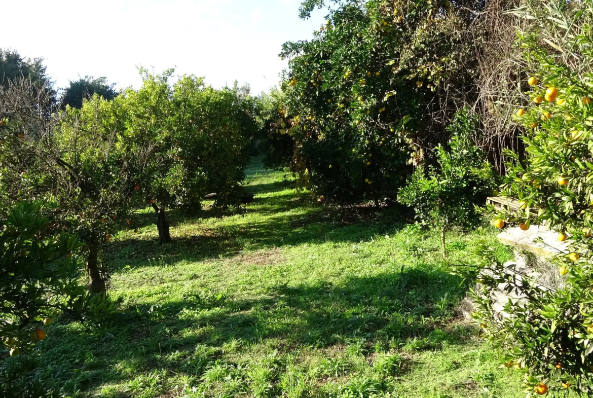 Το ακίνητο είναι εκτός σχεδίου, ενώ περίπου 2,5 στρέμματα είναι φυτεμένα με μανταρινιές.